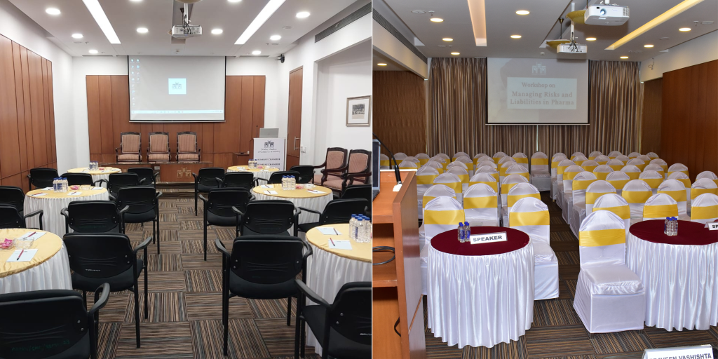 A spacious banquet hall designed for corporate events, seminars, and workshops.